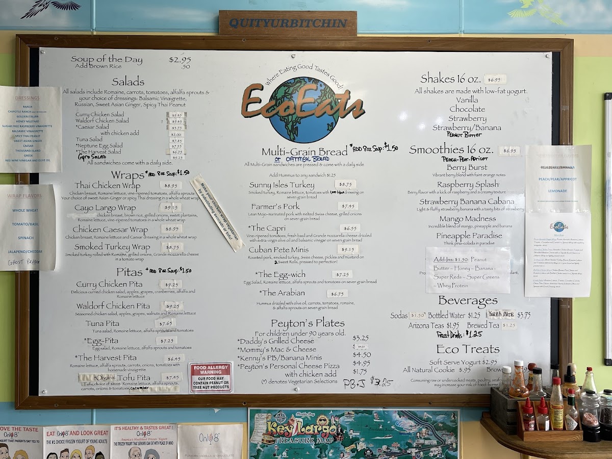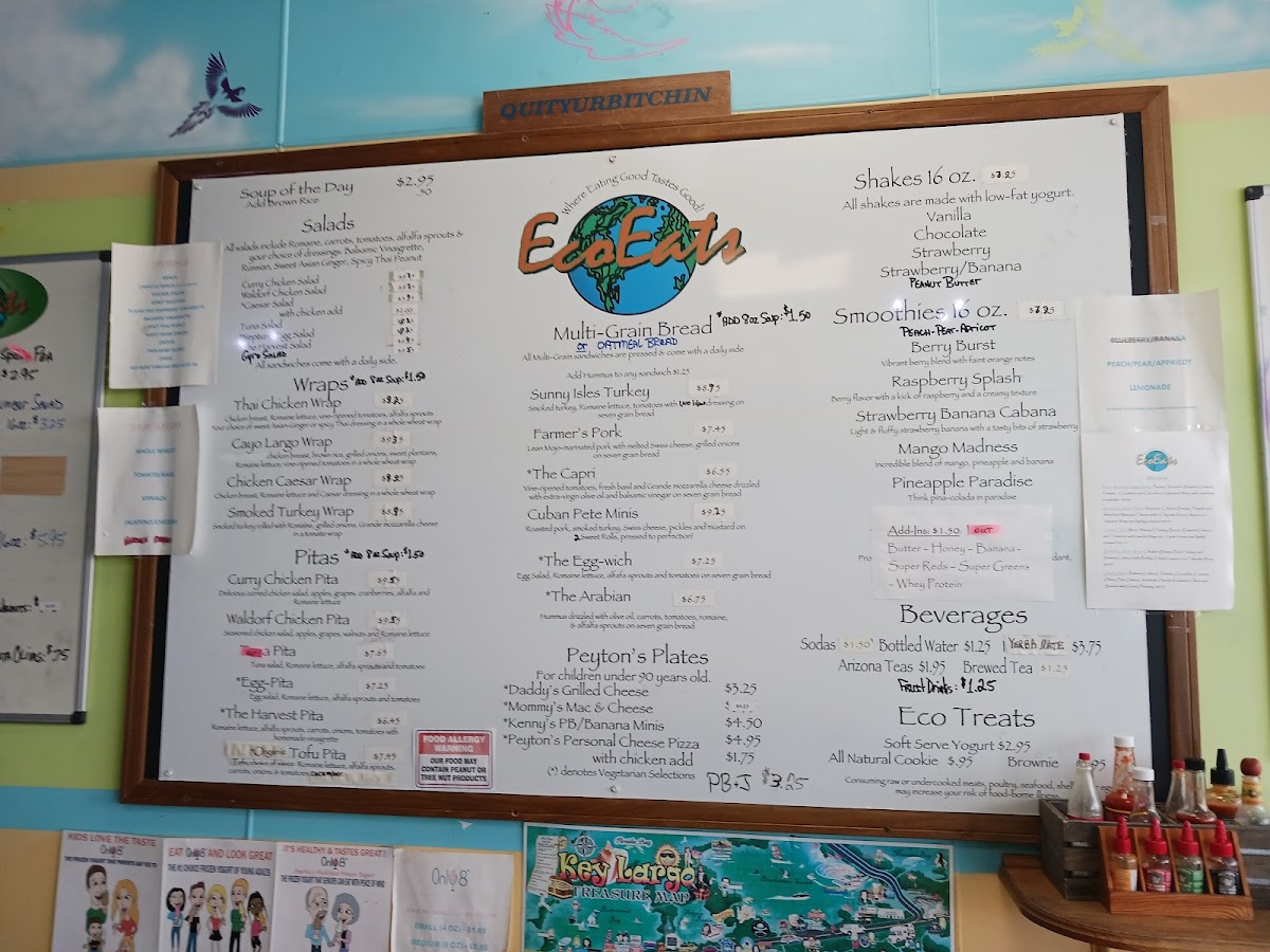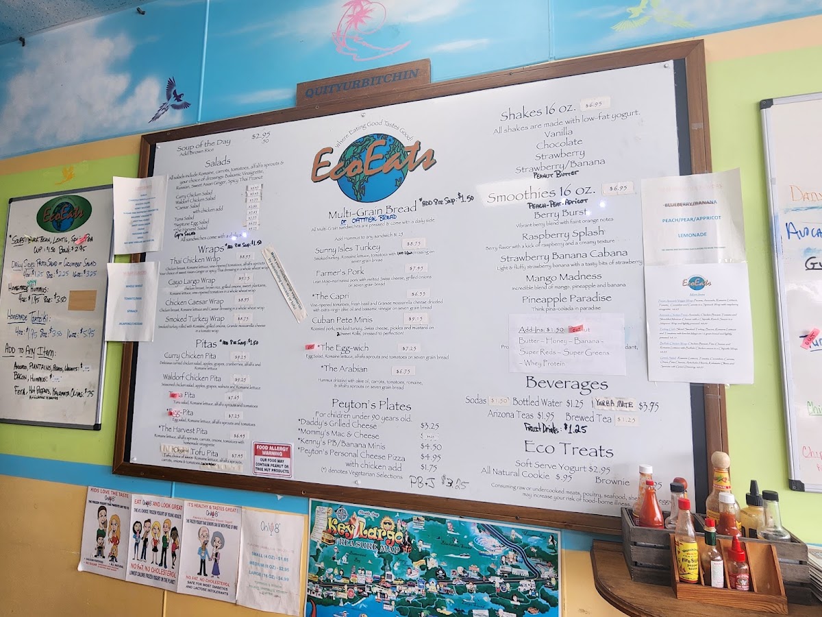 Eco Eats offers a straightforward, casual menu designed for those seeking fresh, health-conscious options without the fuss. The selection centers on satisfying sandwiches, wraps, and pitas made with wholesome ingredients that complement the laid-back atmosphere of Key Largo. Whether you're stopping by for a quick lunch or grabbing a nourishing takeout on the go, the menu fits well with easy, everyday dining moments.